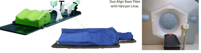 The Klarity Duo Align™ AIO Baseplate is a lightweight and adaptable positioning solution for head, neck, shoulder, thorax & pelvic placement. Made of strong and durable carbon fiber, the Duo Align™ System is fully indexable and compatible with both UFrame and OType masks. The baseplate can also be used with standard Silverman headrests, AccuCushions®, vacuum bags, and indexing bars. Flexible with three parts: (a) Otype AIO Overlay; (b) Overhead Arm Positioner; (c) Moveable KneeFix Set
